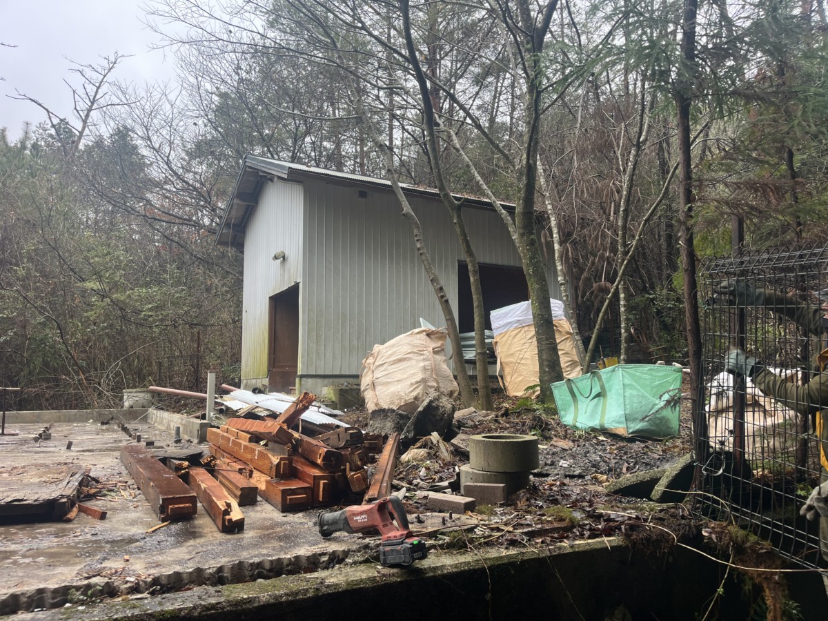 そこで、以前家を建てたお主さんから家から離れた所にお父様が建てた住まい兼倉庫が何十年も放置してあり、雨漏れもし始め息子さんに負の財産を残してはいけ無いとのことで解体することになり、見積もりをして解体工事を行なう事にしました。